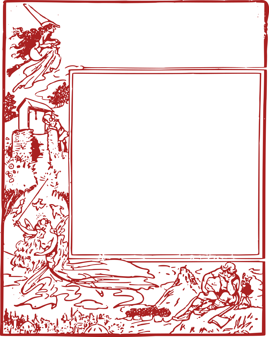 Tags: border, fairy, fantasy, frame, magic, old, red, stories, story, tale, template, witch, black and white, artistic, drawing, painting