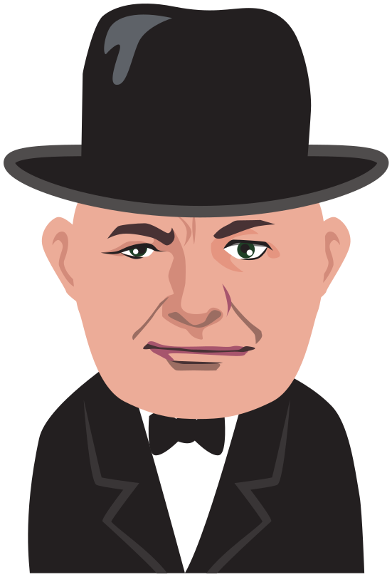 This features a cartoon drawing of an older man wearing a black hat and bow tie. He has a stern expression on his face, giving the impression that he is not happy or pleased with something. The man's attire suggests that he might be dressed for a formal event or occasion. The overall style of the image gives it a vintage feel, reminiscent of classic cartoons from earlier times.