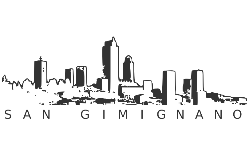 This is a black and white drawing of the city of San Gimignano, Italy. It features tall buildings that are characteristic of this historic city. The buildings are situated in front of a beautiful skyline, which adds to the overall charm of the scene. This artistic representation captures the essence of the city's architecture and landscape, making it an appealing visual for those who appreciate urban landscapes or have a connection to San Gimignano.