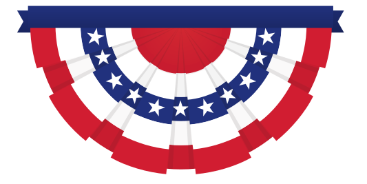 This features a large, circular American flag with a blue ribbon on top. The flag is adorned with red and white stars, creating an eye-catching display. The design of the flag is unique, as it has a circular shape rather than the traditional rectangular form. This creative interpretation of the national symbol adds a touch of novelty to its presentation.