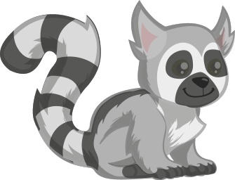 This features a cartoon drawing of a gray lemur with a striped tail. The lemur is sitting on the ground and has its eyes closed, giving it a playful appearance. Its body is positioned in such a way that it appears to be looking upwards, adding an element of curiosity to the scene. The lemur's fur is depicted as white with black stripes, which adds to its distinctive look. Overall, this image captures a whimsical and charming moment of a cartoon lemur in action.