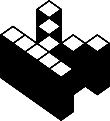 This features a black and white symbol that resembles the letter "K" made from white boxes. This unique design is composed of multiple squares arranged in various patterns, creating an intriguing visual effect. The individual squares are positioned at different angles and heights, giving the impression of depth and complexity to the overall composition. The black background further accentuates the contrast between the white squares and the symbol's shape, making it a striking and eye-catching design.