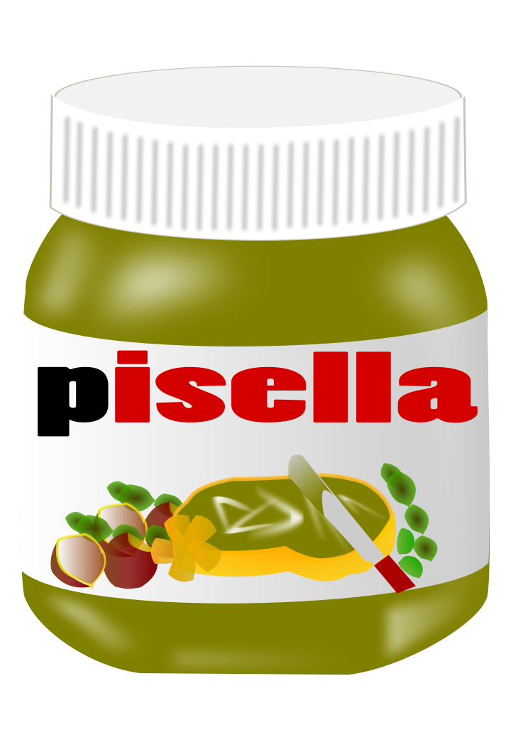 This features a jar of Pisella, which is a green colored condiment. On top of the jar, there is a white cap that adds to its presentation. The label on the jar reads "Pisella," indicating the type of product inside. The jar appears to be filled with a yellow substance, possibly a sauce or spread, and it has a spoon placed within it for easy serving. This unique condiment could be used as a dip or spread in various dishes, adding flavor and texture to the meal.
