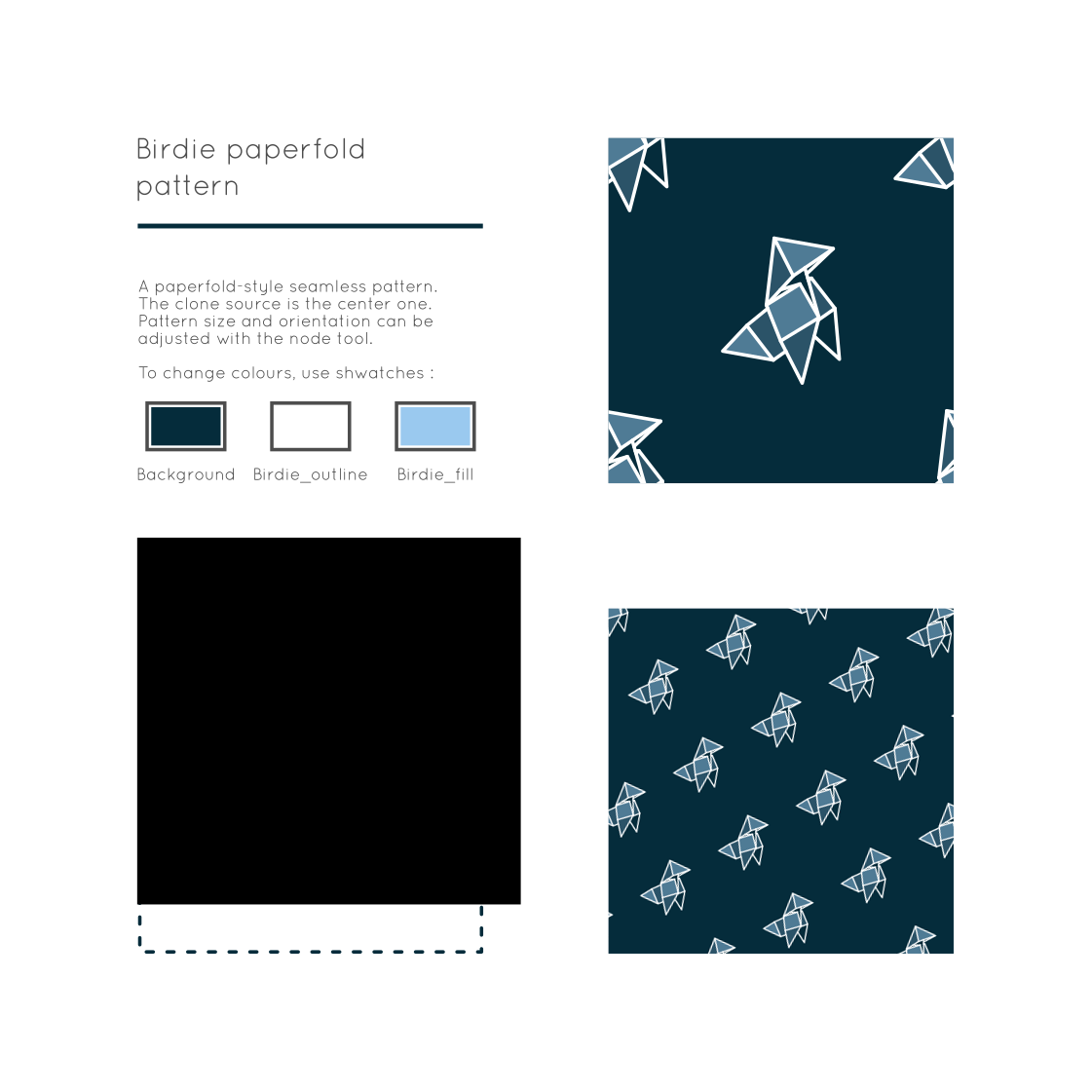 This showcases a collection of four different paperfold patterns. Each pattern is unique and can be adjusted to fit the user's needs by using the node tool. These patterns are ideal for various creative projects, such as scrapbooking or card making. To change colors, one can use shwatches, which allows for a customized look that suits their preferences. The image is presented in a visually appealing manner, with each pattern displayed on its own page to highlight the design and make it easy for users to choose their desired pattern.