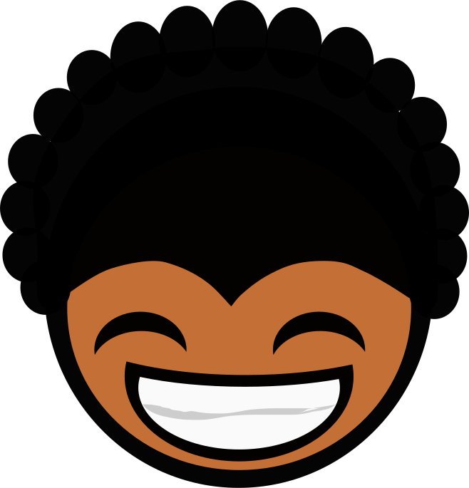 This features a smiling cartoon face with big, round eyes and a wide smile. The face is brown in color and has a friendly appearance. The mouth of the character is open, showing teeth as it smiles brightly. This cartoon face could be used for various purposes such as an emoji or a logo design.