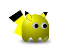 This features a yellow cartoon character that resembles the popular Pokemon character, Pikachu. This character is depicted with large eyes and a big smile on its face, giving it an adorable appearance. It has a black nose and mouth, adding to its cute look. The character's body is predominantly yellow, with some black accents around the eyes and mouth. Overall, this cartoon character exudes a sense of playfulness and joy.