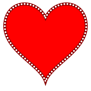 This features a large, red heart with a black border of dots. The heart is prominently displayed in the center of the picture, and its vibrant color stands out against the background. The dotted border adds an interesting visual element to the heart's design, making it appear more dynamic and engaging. This unique combination of colors and patterns creates a visually appealing image that captures attention and evokes feelings of love or affection.