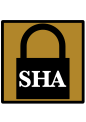 This features a logo for the SHA (Secure Hash Algorithm) which is used in cryptography. The logo consists of two large golden padlocks, one on top of the other, with the word "SHA" written below them. The lock and key design gives an impression of security and trustworthiness. This logo can be commonly found in various digital applications such as file encryption or data protection.