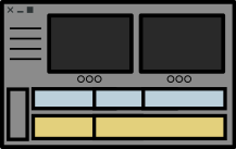 This is a black and white drawing of an electronic device, possibly a computer or a television. It features multiple screens with different colors, including yellow, blue, and gray. There are three main screens in the drawing, each displaying various images. Additionally, there are two smaller screens located on the left side of the main screens. The overall composition of the image gives it an artistic and unique appearance.