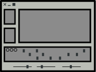 This is a computer screen with a gray background and a row of buttons. There are several buttons on the screen, including one at the top left corner, two in the middle, and three more towards the right side. Additionally, there is another button located near the bottom right corner of the screen. This arrangement suggests that this could be an interface for controlling or interacting with a computer program or application. The buttons may represent various functions or options within the software, allowing users to navigate and perform tasks efficiently.