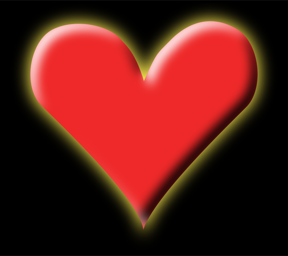 This features a large, red heart with a yellow outline. It is positioned in the center of the frame and appears to be the main focus of the picture. The heart's vibrant color contrasts beautifully against the dark background, making it stand out prominently. This artistic representation of love or affection could be used as a decorative element or even as a symbol for various occasions such as Valentine's Day or anniversaries.