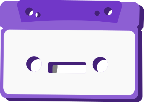 This features a purple cassette tape with two white buttons on the front. It appears to be an old-fashioned cassette player, possibly used for playing music or recording audio. The cassette is placed in a cartoonish setting, giving it a playful and nostalgic feel. This type of cassette player was once a popular choice for listening to music and capturing memories before the advent of digital media.