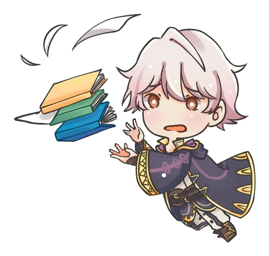 This features a young anime boy wearing a blue robe, who appears to be tripping and dropping his books. He is holding the book in one hand while trying to catch it with the other. There are several books scattered around him on the ground, indicating that he was likely reading or studying before the incident occurred. The scene captures a humorous moment of the boy's mishap, showcasing his playful and lighthearted nature.