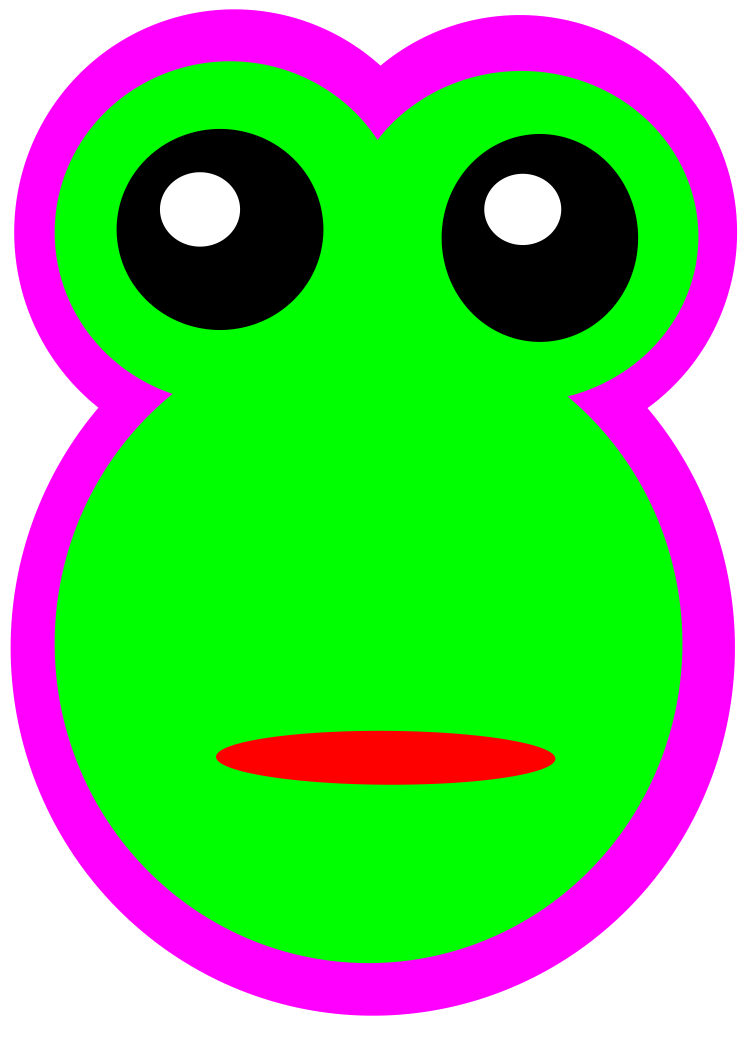 This features a green and pink cartoon frog with googly eyes. It appears to be smiling, giving the impression of being happy or playful. The frog's facial expression is quite unique, making it stand out as an interesting character. Its large eyes are positioned close together, adding to its friendly appearance. Overall, this image showcases a creative and whimsical representation of a frog with a cheerful demeanor.