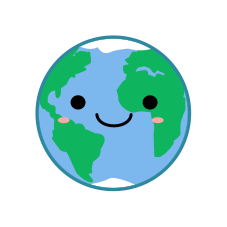 This features a smiling and blushing Earth, with five continents visible on its surface. The Earth is depicted as a round, happy-looking planet, complete with the familiar land masses that make up our world. This whimsical representation of the Earth adds a touch of humor to an otherwise serious subject matter, making it an appealing and engaging visual for viewers.