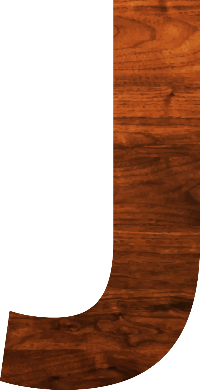 This features a wooden letter J, which is the first letter of the alphabet. It appears to be made from wood and has a natural texture that gives it an authentic look. The letter is prominently displayed in the foreground, with its shape and color contrasting against the background. This unique design element adds visual interest and character to the image, making it stand out as a creative representation of the alphabet.