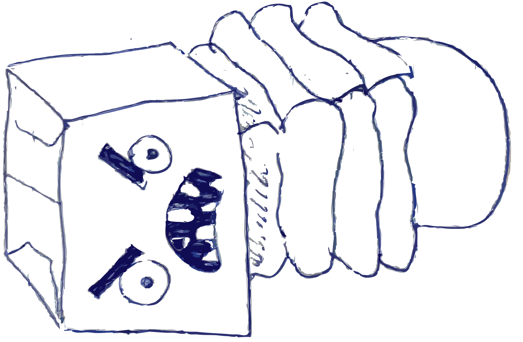 This features a cartoonish drawing of a sandwich with a face drawn on it. The sandwich is depicted as having a mouth and eyes, giving the impression that it's smiling or making a funny face. The drawing appears to be hand-drawn, adding a unique touch to the artwork.