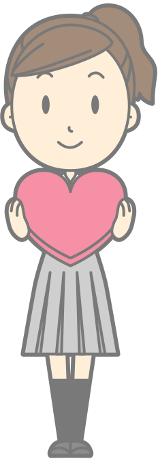 This features a cartoon drawing of a woman wearing a skirt and holding a pink heart. She is standing in front of a white background, which provides a clean and simple backdrop for the illustration. The woman's outfit consists of a black dress with a white undershirt, giving her a stylish appearance. Her hair is tied up in a bun, adding to her overall charm. The heart she holds appears to be an essential part of her attire or perhaps symbolizes her love for someone or something.