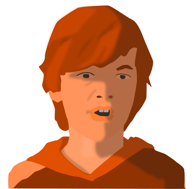 This features a young man with red hair and an orange hue to his skin. He is wearing a sweater, which adds to the warm tones of his appearance. His mouth is open, possibly indicating surprise or excitement. The overall effect gives him a unique and intriguing look.