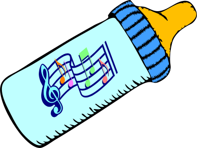This features a baby bottle with music notes on its side. The bottle is blue in color and has a yellow top, giving it an appealing appearance. The music notes are arranged in a pattern that covers the entire length of the bottle, making it visually interesting and unique. This creative design could be particularly attractive to parents who appreciate musical themes or want to add a touch of personality to their baby's feeding equipment.