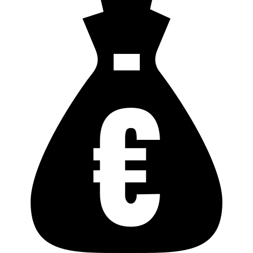 This features a black coin bag with the word "Euro" written on it. This Euro symbol is likely used to represent the value of the money inside the bag, which could be in Euros or another currency. The bag appears to be a common item found in various settings such as stores and banks, where people can exchange their cash for coins or other forms of currency.