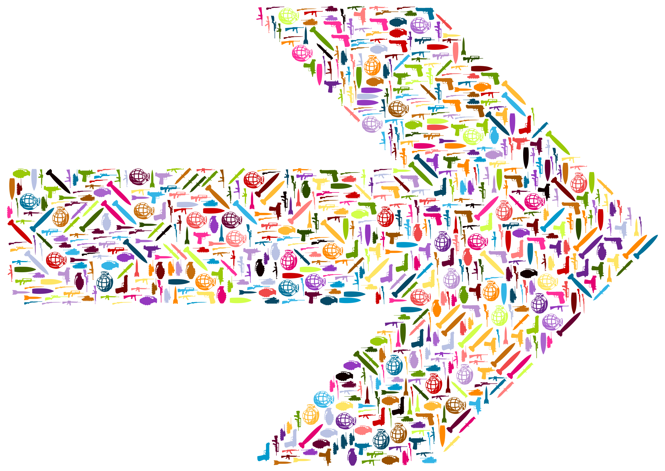 This features a large arrow made up of various colorful shapes and symbols. These shapes are arranged in such a way that they form the outline of an arrow, with each shape representing different elements or concepts. The arrow is filled with these shapes, creating a visually appealing and intricate design. This unique artwork showcases creativity and attention to detail, making it an interesting piece for viewers to appreciate.