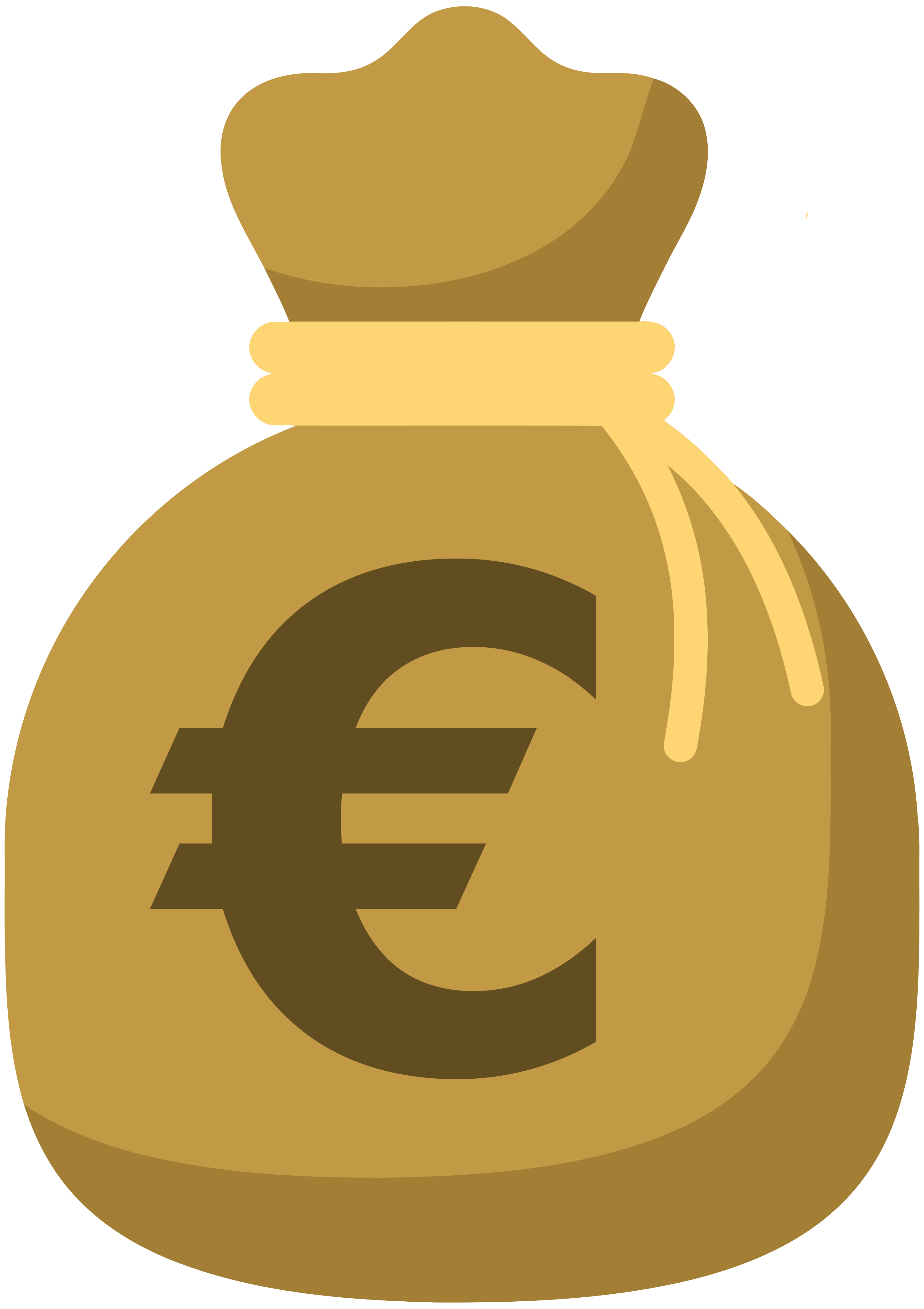 This features a large bag of money, specifically a gold bag containing 500 euros. The bag is prominently displayed in the foreground with its contents clearly visible. The bag appears to be made from cloth and has a handle, making it easy to carry or store. The overall scene gives off an impression of wealth and financial stability.