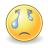 This features a yellow smiley face with blue eyes and a frowning mouth. The frown is represented by two blue teardrops, one on the left side of the face and another on the right side. This emoticon is commonly used to express sadness or dissatisfaction in various forms of communication such as emails, text messages, and social media platforms.