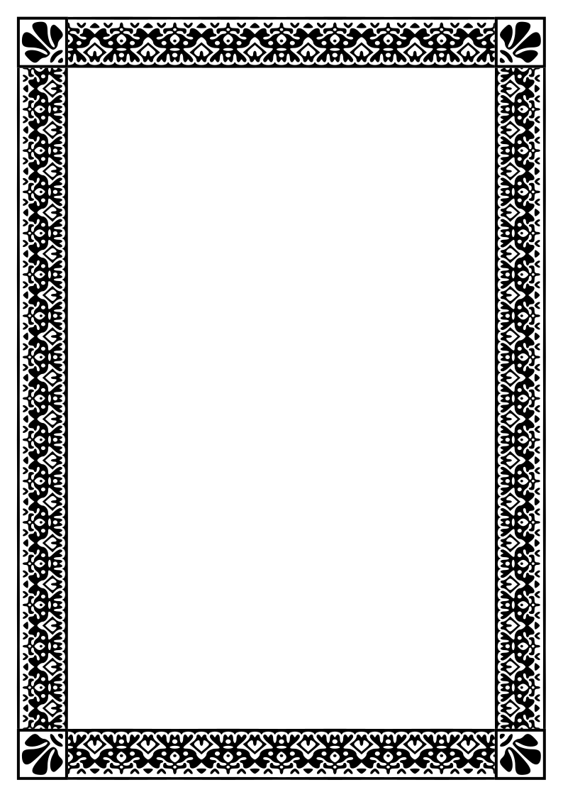 This features a decorative border with an ornate design, likely used for framing or embellishing paper. The frame is adorned with intricate patterns and shapes, creating a visually appealing appearance. The border is sized to accommodate A4-sized paper, making it suitable for various artistic projects or as a decorative element in one's living space.