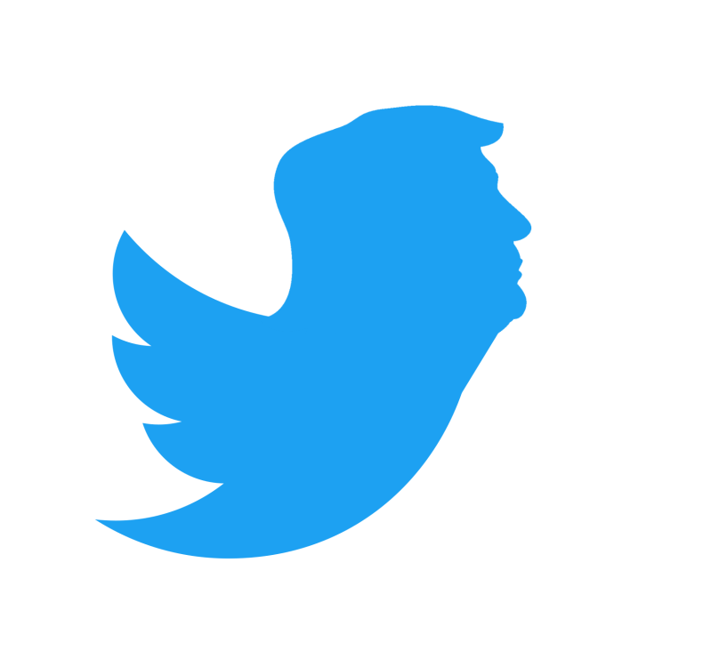 This features a blue bird with a face, resembling the president of the United States, Donald Trump. This unique design is likely meant to represent Twitter and its association with the president. The bird's head is prominently displayed in the center of the image, while its body extends outwards towards the edges. The overall appearance gives off a sense of humor and creativity, as it combines the iconic symbol of Twitter with the recognizable face of Donald Trump.