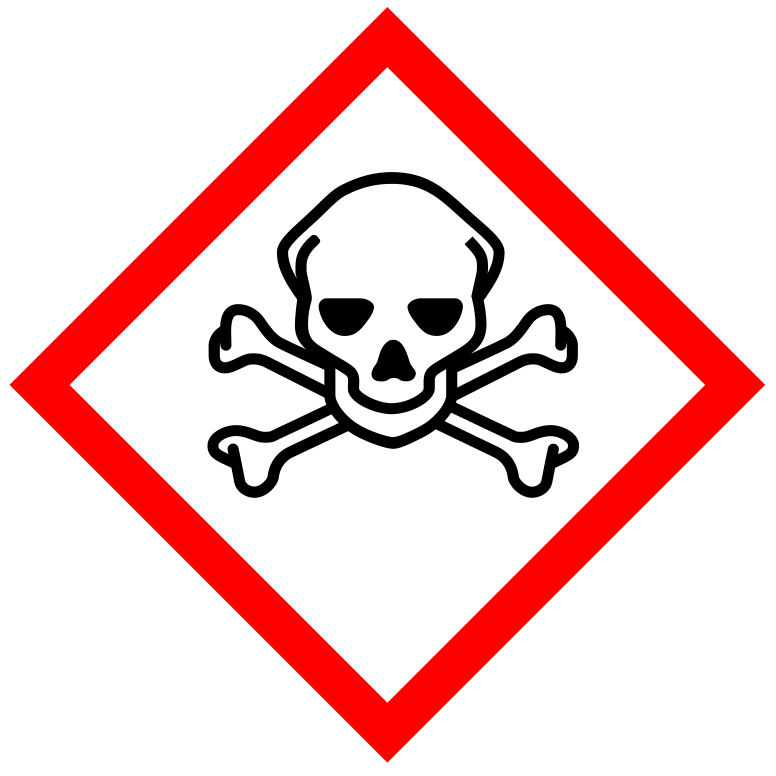 This features a red and white sign with a skull and crossbones symbol on it. This symbol is commonly associated with danger or hazard, indicating that the substance or object depicted may be harmful if ingested, inhaled, or otherwise come into contact with the human body. The skull and crossbones are often used to warn people of potential dangers, such as poisonous chemicals, explosive materials, or other hazardous items. This symbol is an internationally recognized standard for classifying and labeling potentially harmful substances, as established by the Globally Harmonized System of Classification and Labelling of Chemicals (GHS).