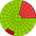 This features a large, circular object with a green background and red accents. It appears to be a clock or some kind of time-keeping device, as it has numbers on its surface. There are several smaller circles within the larger circle, which may represent different measurements or readings. The overall design is quite unique and visually interesting, making it an intriguing piece for viewers.
