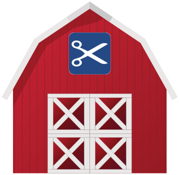 This features a red barn with scissors on it, which is an unusual sight. The barn has been modified to display a quilt block symbol, and the quilt design can easily be replaced with any square design of choice. This unique combination of elements creates an interesting visual effect that stands out from typical barns.