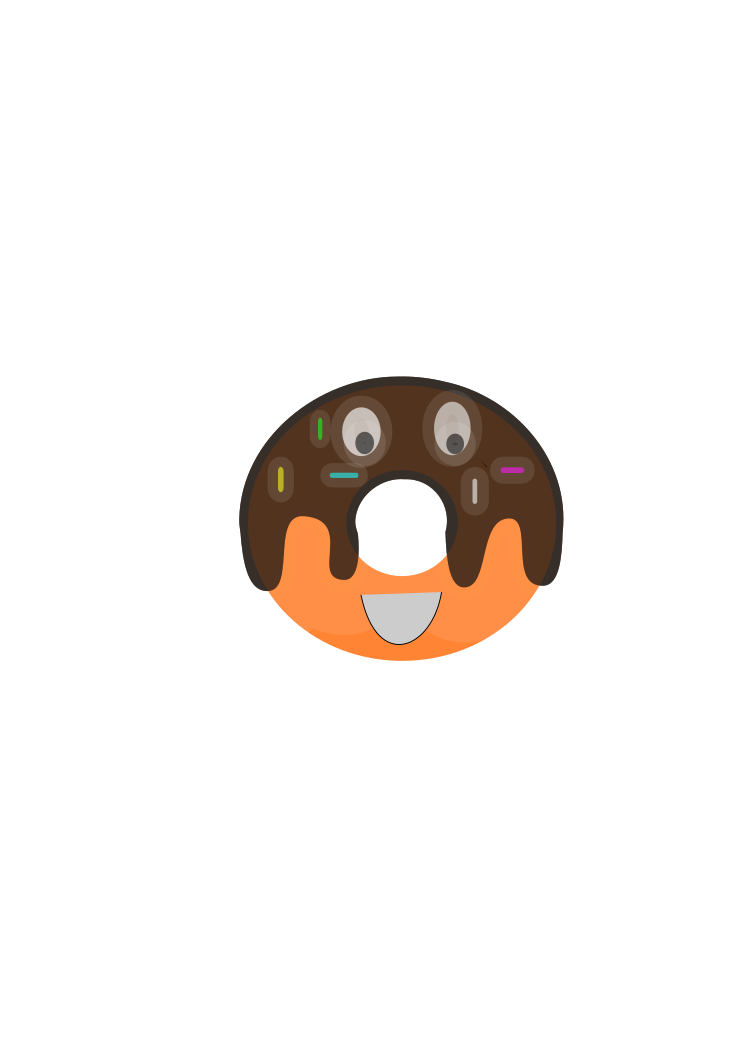 This features a cartoon donut with chocolate frosting and sprinkles, placed in the center of a white background. The donut appears to be smiling or making a face, giving it a playful and friendly appearance. The close-up view of the donut highlights its details, such as the chocolate drizzle and the colorful sprinkles on top. This creative representation of a delicious treat is likely intended to evoke feelings of enjoyment or indulgence in sweet treats.