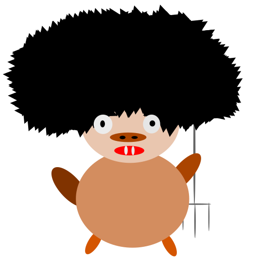 This features a cartoon-like illustration of an animal with a light brown body. It has a large, black afro on its head and is holding a pitchfork in one hand. The animal appears to be a teddy bear or a similar type of stuffed animal. The illustration is done in a simple, flat style that gives it a unique and playful appearance.