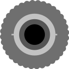 This features a close-up of an old tire with a black center. The tire appears to be worn and has a slightly faded appearance, giving it a vintage look. The tire's outer edge is visible in the foreground, while the inner part of the tire is obscured by the black center. This unique perspective creates an interesting visual effect that draws attention to the tire's design and texture.