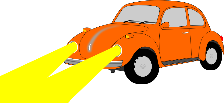 This features a cartoon-like Volkswagen Beetle car with its headlights on, driving down the road. The car is bright orange and has a unique design that sets it apart from traditional cars. It appears to be an alternative version of the classic Volkswagen Beetle, adding a creative twist to the iconic vehicle. The cartoon-like nature of the image suggests that it may have been created for entertainment or artistic purposes rather than as a functional car model.