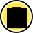 This features a yellow circle with a black background, which is an icon for a suitcase. This icon could be used in various contexts such as representing luggage or travel-related items. It may also indicate that the 'vibrate' mode of the device is switched off, suggesting that the user prefers to have their device silent while using it. The black background and yellow circle create a contrasting visual effect, making the icon easily recognizable and distinguishable from other elements on the screen.