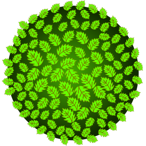 This features a large, round green object with many small leaves on it. These leaves are scattered all over the surface of the object, creating a lush and vibrant appearance. The leaves vary in size and shape, adding depth to the overall design of the object. The close-up view of this green sphere highlights its intricate details and textures, making it an interesting focal point for any setting.
