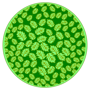 This features a green circular design with many small leaves on it. These leaves are arranged in various positions around the circle, creating an intricate and visually appealing pattern. The overall effect is that of a leafy plant or tree, with each individual leaf contributing to the lush, vibrant appearance of the design. This unique circular pattern could be used for decorative purposes or as part of a larger artistic project, showcasing the beauty and complexity of nature's patterns.