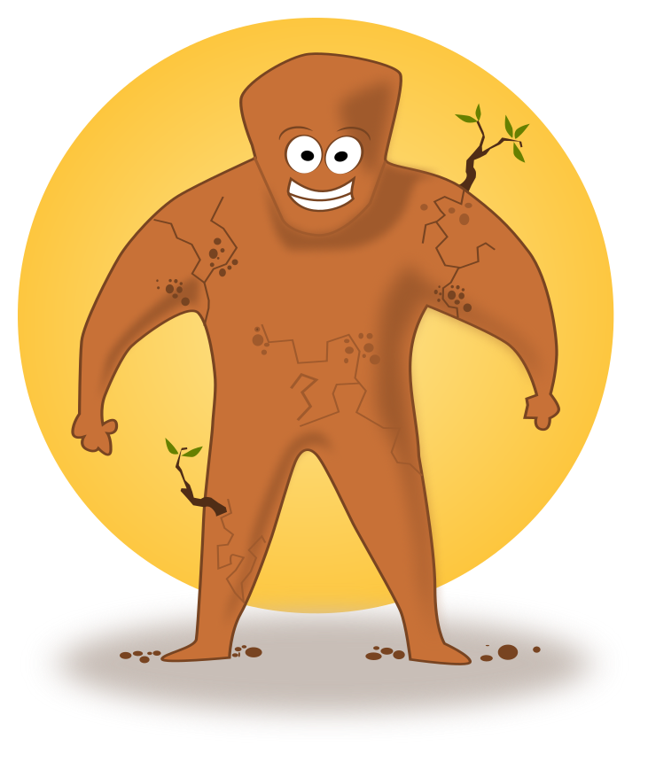 Tags: cartoon, dirt, earth, friendly, ground, hero, mud, strong, superhero, humor, drawing, skinny, man, tree, plant