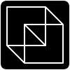 This features a black and white square with a large "X" in the center. This design is reminiscent of a geometric shape, possibly resembling a box or a cube. The contrasting colors create an interesting visual effect that draws attention to the central element of the design. The simplicity of the image allows for easy recognition and interpretation by viewers, making it suitable for various applications such as logos, branding, or artistic expressions.