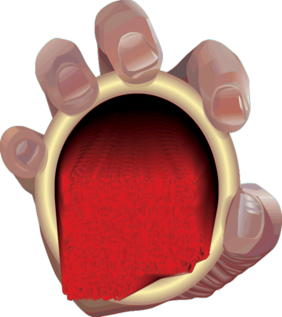 This features a hand holding an open container with red liquid inside. The hand is positioned in such a way that it appears to be opening its mouth, as if trying to eat the red substance. This unusual scene creates an interesting visual effect and might evoke curiosity about what the red liquid could be or how it would taste. It's possible that someone could use this container for various purposes, such as holding food or drinks, but the image's focus on the hand opening its mouth adds a unique twist to the scene.