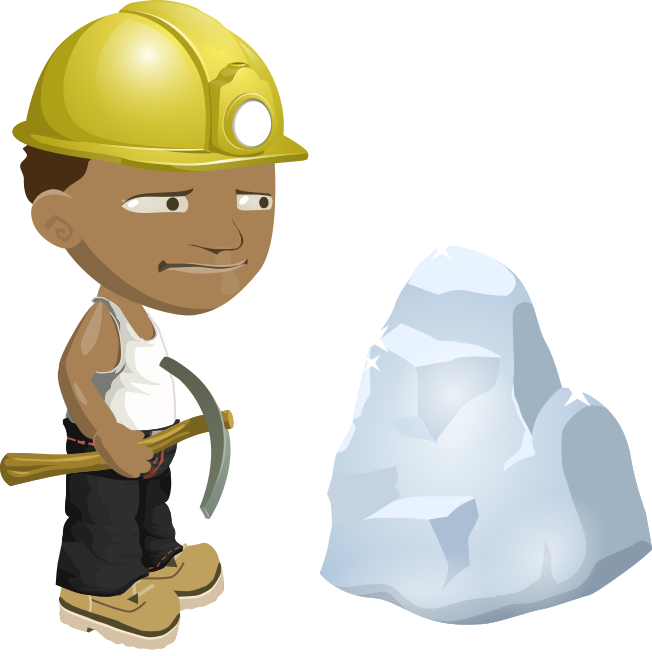 This features a cartoon character wearing a yellow hard hat and holding a pickaxe, standing next to a large white rock. The character appears to be a miner or construction worker, possibly working on the rock formation. The cartoon is set in an outdoor environment with the rock being the main focus of the scene. The character's expression suggests that they might be feeling frustrated or challenged by their task at hand.