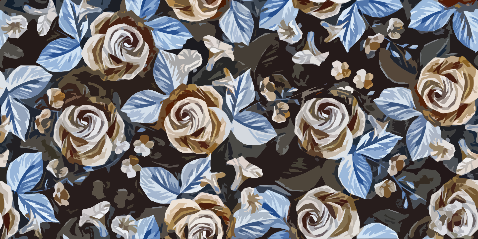 This features a beautiful floral pattern with roses as the main focus. There are numerous roses of various sizes and colors scattered throughout the scene, creating an eye-catching design. Some of the roses are positioned closer to the foreground while others are further in the background, giving depth and dimension to the image. The overall effect is a visually appealing and captivating display of flowers.