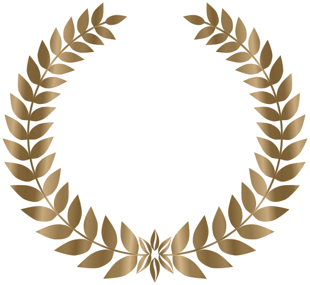 This features a large, golden laurel wreath with leaves and branches. It is placed in the center of a white background, creating an eye-catching contrast. The wreath appears to be made from gold foil or paper, giving it a shiny appearance. The intricate design of the wreath makes it suitable for various occasions such as awards, decorations, or even as a symbol of achievement.