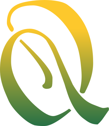 This features a green and yellow logo that is shaped like an upside-down letter Q. This unique design element gives the impression of a leaf or a similar shape, making it visually appealing. The color scheme of the logo consists of green and yellow hues, which create a vibrant and lively appearance. Overall, this logo stands out as a creative and eye-catching representation of the letter Q.