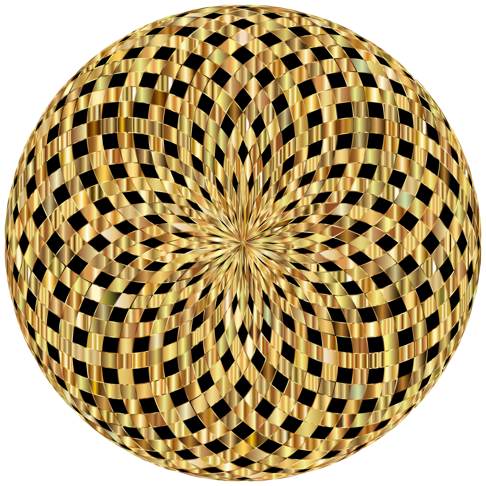This features a large, round, and intricately designed object that resembles a mandala. This artistic piece is made up of various geometric shapes, including circles and triangles, which are interconnected to create a visually appealing pattern. The colors used in the design are predominantly gold and black, giving it an elegant and sophisticated appearance. The intricate patterns on this mandala-like object make it an interesting focal point for any space where it is displayed.