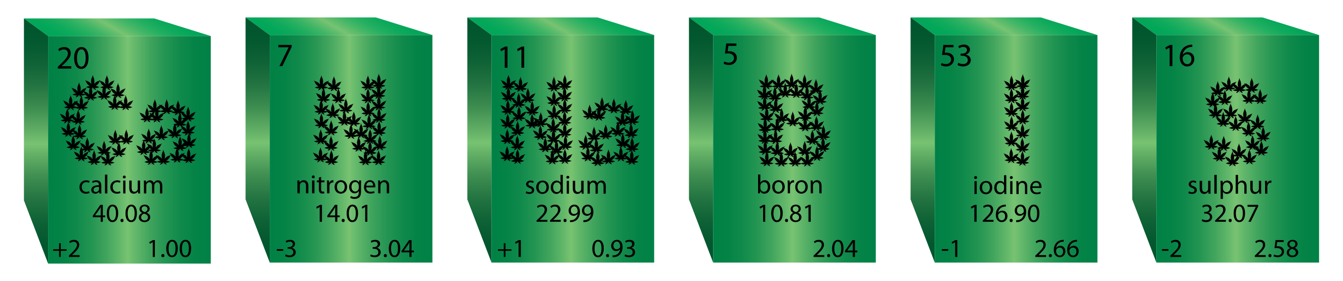 This features a series of green and white cards, each with the name of an element written on them. These elements are arranged in a row, showcasing their names in a visually appealing manner. There are twelve cards in total, each one featuring a different element from the periodic table. The first card displays the name "Cannabis," while the second card features "Typography." The third card is labeled with "II," indicating that this could be part of a series or collection. The remaining ten cards display various elements such as Hydrogen, Oxygen, Nitrogen, Boron, Carbon, Sulfur, Calcium, Phosphorus, Sodium, and Potassium. These cards are arranged in a neat row, making it easy to identify each element and their corresponding names.