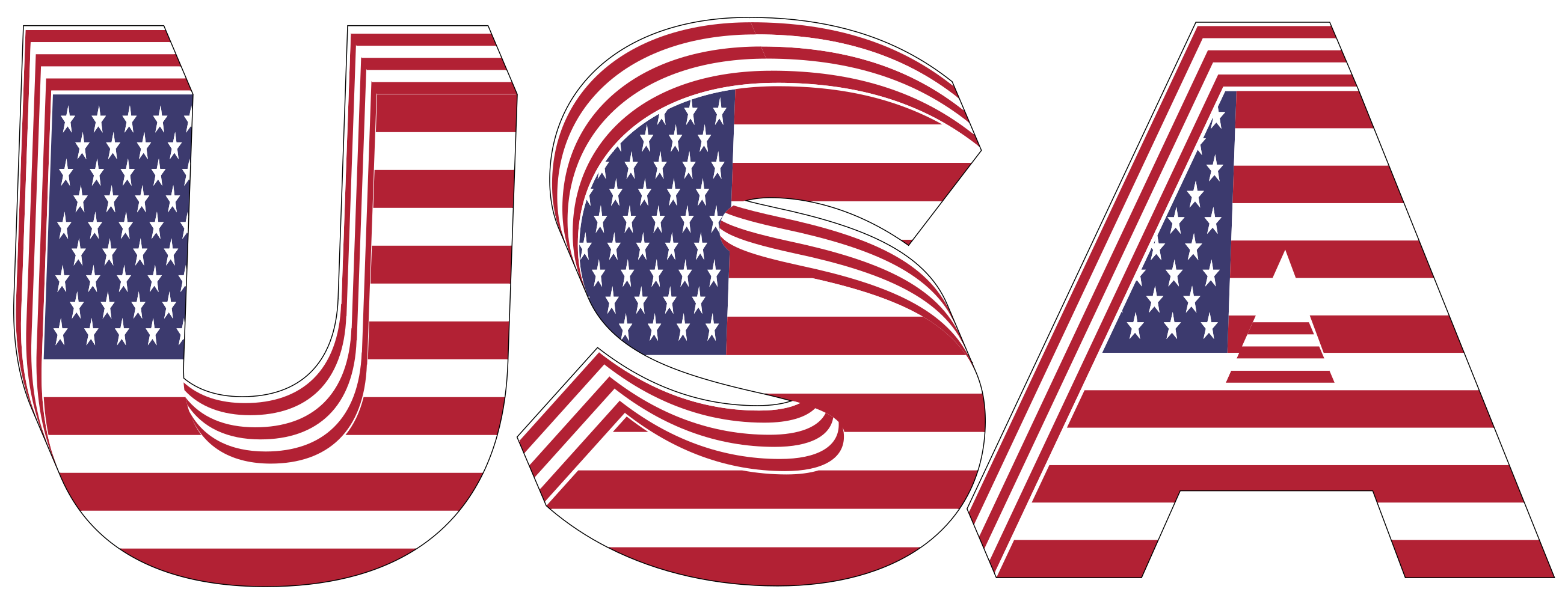 This features a large, three-dimensional word "USA" with each letter adorned by an American flag pattern. The word is displayed in red and blue colors, creating a striking visual effect. The design of the letters gives the impression that they are floating or hovering above the background, adding depth to the overall presentation. This creative display of text could be used for various purposes such as promotional materials, educational resources, or even artistic expression.